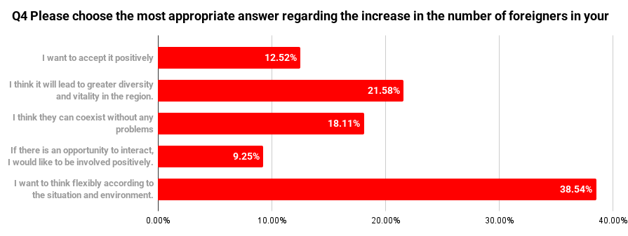 In addition, 12.52% answered that they “would like to accept it positively,” while 9.25% selected “I would like to engage positively if there are opportunities for interaction.”