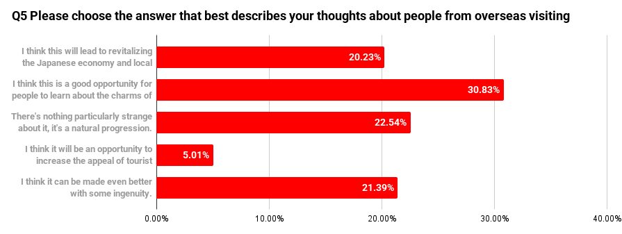 In addition, 20.23% answered that inbound visits “contribute to Japan’s economy and regional revitalization.”