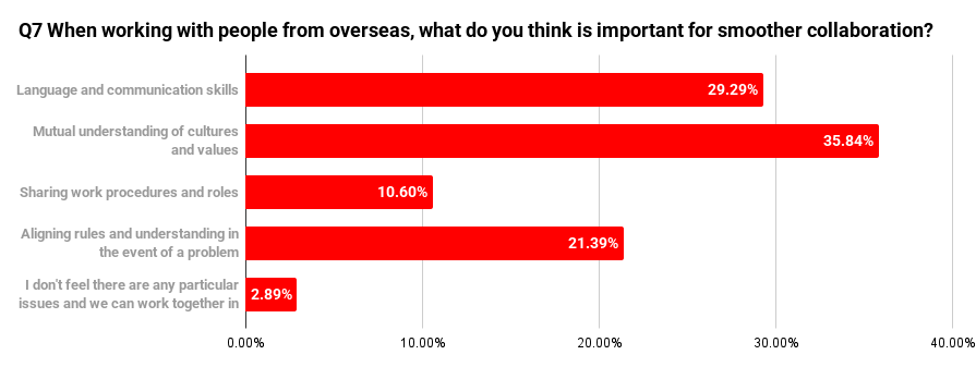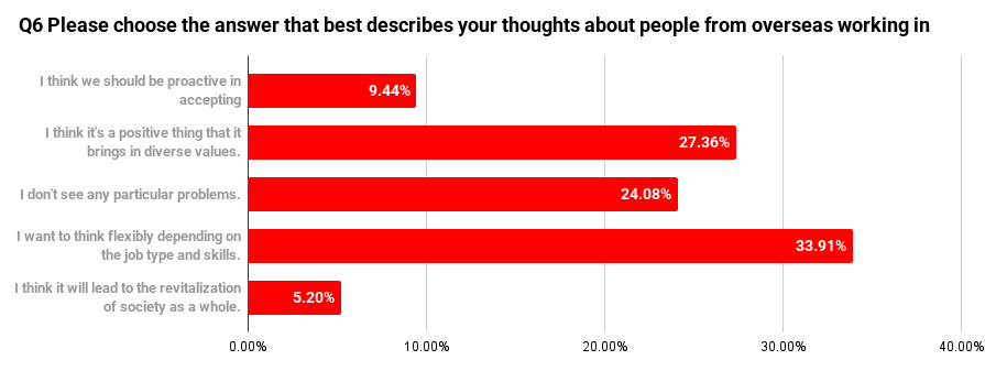 This suggests that relatively few respondents consider broader societal impact when thinking about people from overseas working in Japan.