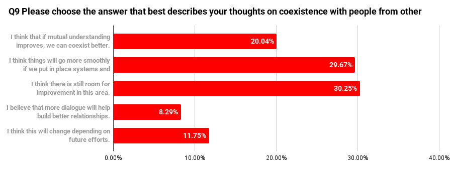 This indicates that many respondents do not see coexistence as something that has already been fully achieved, but rather as an ongoing process.