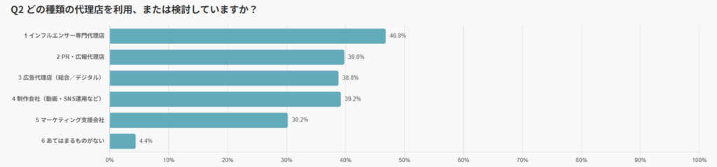 This was followed by PR/public relations agencies (39.8%) and production companies (video production, SNS management, etc.) at 39.2%, indicating a clear preference for companies with strong expertise in specific areas.
