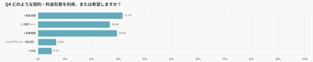 When respondents were asked about their preferred contract and pricing model, the most selected option was “per-project estimate” at 31.7%.