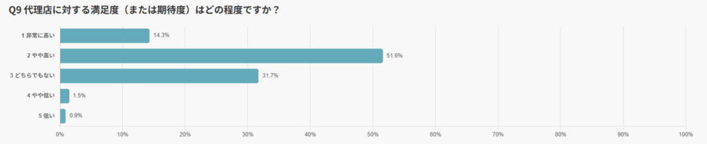 When respondents were asked about their satisfaction (or expectations) toward agencies, the most common answer was “somewhat high,” selected by 51.6%.