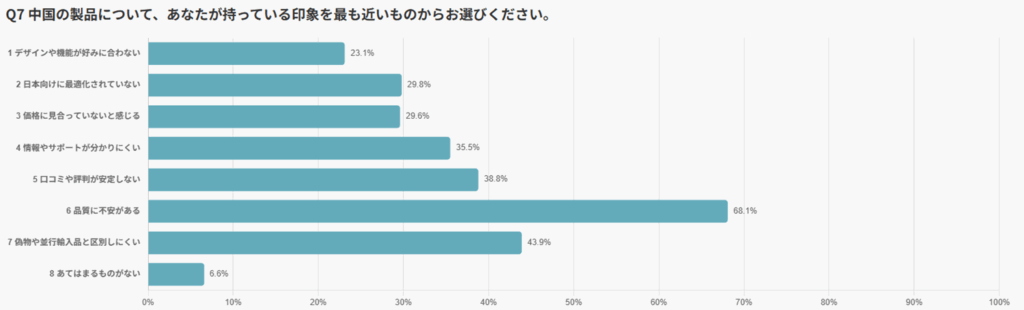 The most commonly selected perception of Chinese products was “concerned about product quality” at 68.1%.