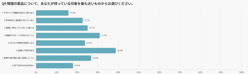 The most frequently cited perception of Korean products was “concerned about product quality” at 38.8%.