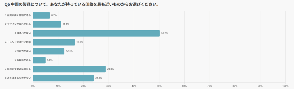 For Chinese products, more than half of respondents highlighted “good cost performance” (50.2%), followed by “down-to-earth and accessible” (28.8%). Price clearly stands out as their greatest strength.