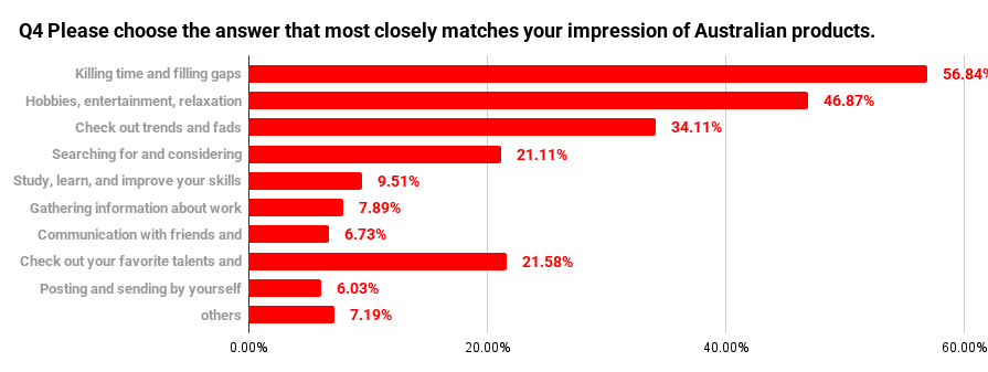 Additionally, “Checking trends and fashion” was also high at 34.11% (147 people), showing that in addition to entertainment, it is used by a certain number of people as a means to stay informed about currently popular topics.