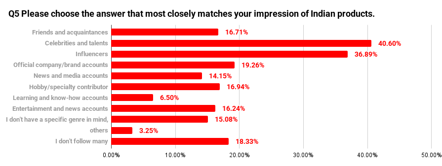The percentage of those following “Celebrities / Talent” was 45.12% (74 people) for women and 37.83% (101 people) for men, indicating that women put more weight on following specific individuals.